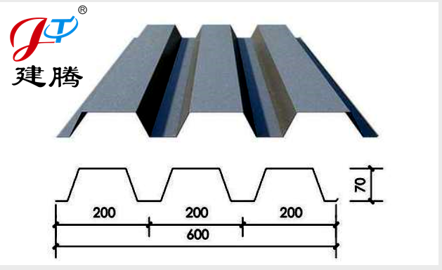 效寬度為600mm,是開口型壓型鋼板的一款型號(hào)規(guī)格,中構(gòu)新材生產(chǎn)的YX70-200-600壓型鋼板波高為70mm,由三個(gè)波組成,每個(gè)波距為200mm,原材料主要使用唐鋼、首鋼、鞍鋼等廠家材質(zhì)。