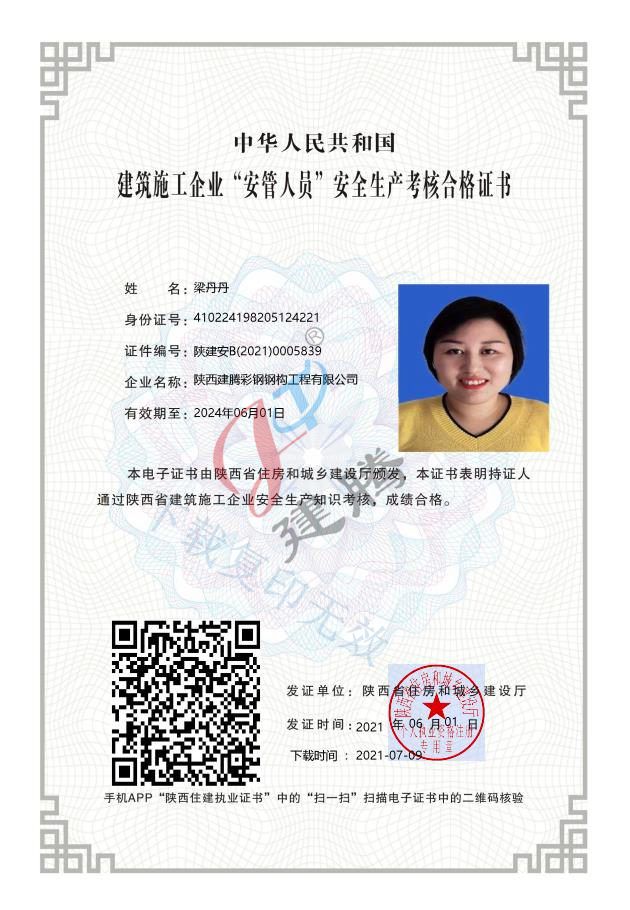 安全生產(chǎn)考核合格證書